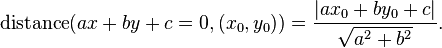 desde el punto (x0, y0) hasta la línea AX + BY + C = 0.